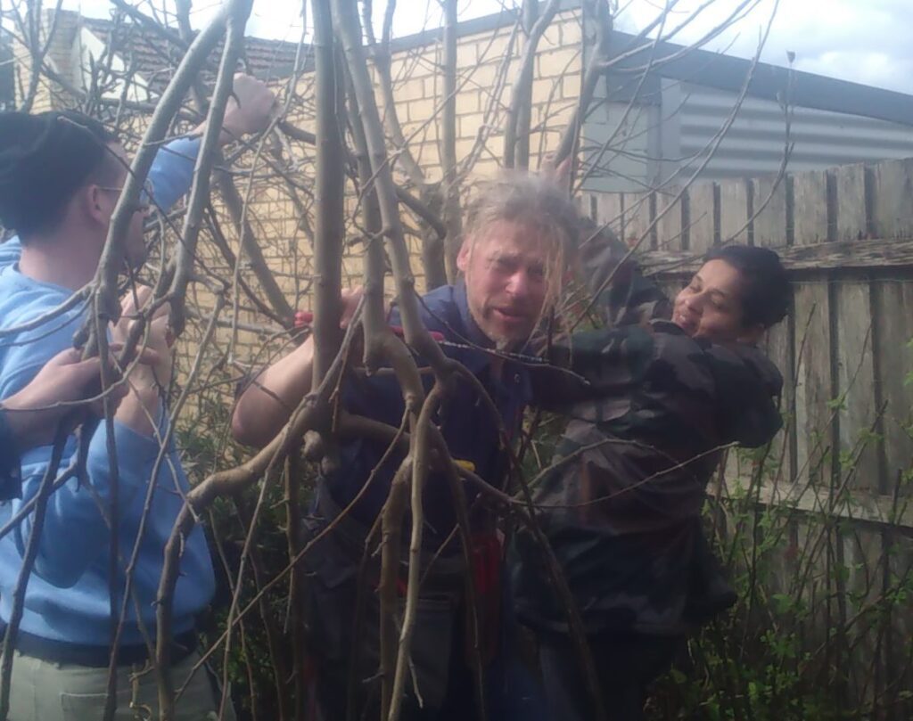 We had three experts on the ground to assist us in the expansion of our tree knowledge and guide us through the activities. Rowan gave us great handy tips on tool sharpening including secateurs. He’s learnt all his tricks from his dad who incidentally was present during the sharpening demo… cheered on the loudest!. Dom aka the tree whisperer guided us through of tree pruning and Terry was the Espalier extraordinaire (from Latin spatula ‘shoulder blade)!