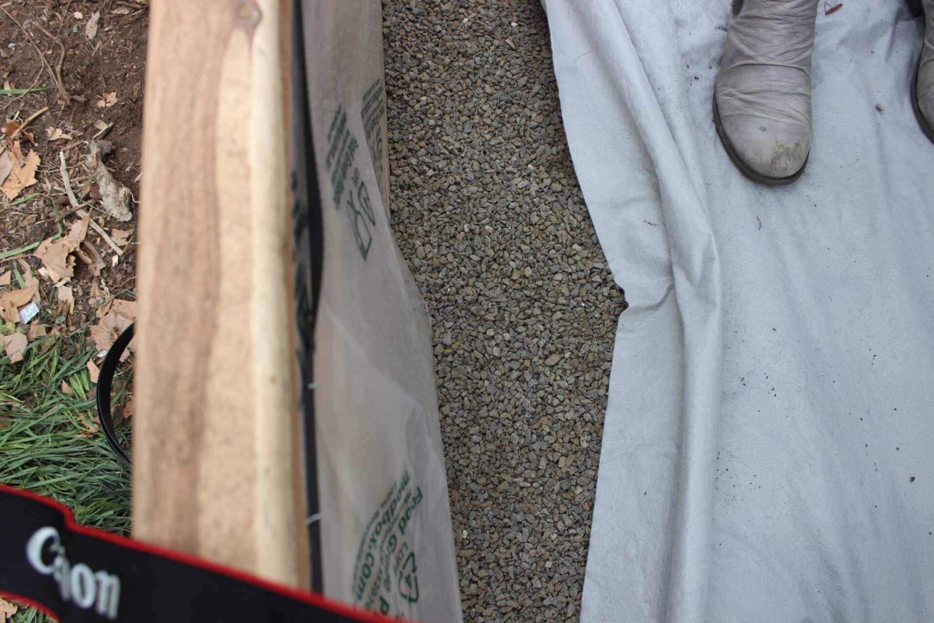 - A little peek at the scoria under the geofabric with the plastic down the left side