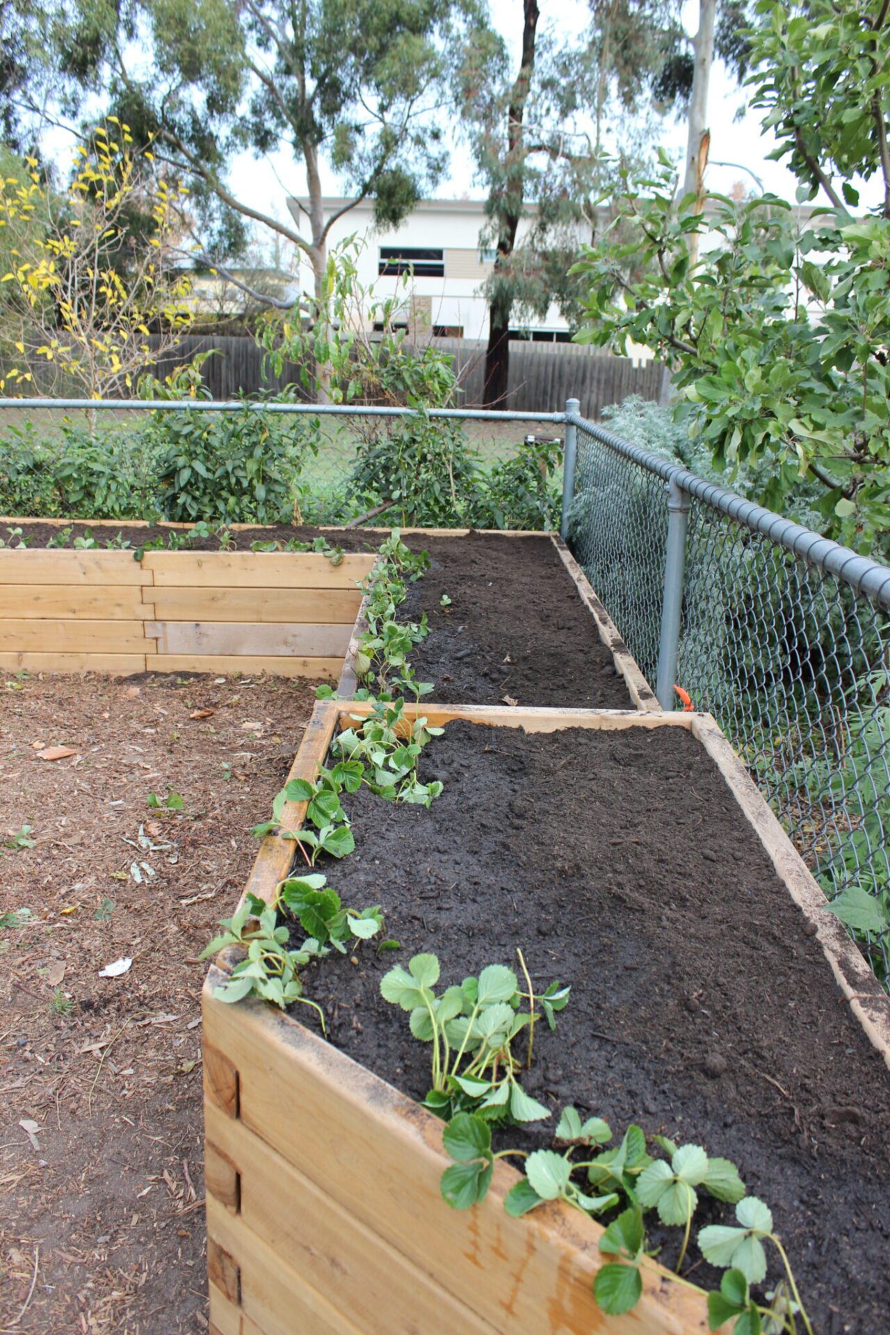Agnes, Amelie, Nikki (and others I’m sure) worked together to get the bed filled while Ros and Rob prepared strawberry babies for planting. Agnes looked so pleased with the filled bed and delighted to be able to finish the job by tucking the babies in their beds. More to be planted and irrigation to be set up, but what a perfect finish to some of the day’s efforts.