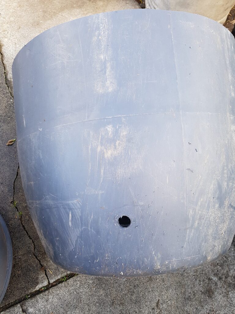 Next up you need to make sure that you’ve got an overflow pipe happening – you don’t want to be drowning your plants! I have a hole-saw kit and I just use the one that’s around the same size as the outlet pipe. It’s a good idea to have this hole as low as you can – these drums have a curve at the bottom which can be a bit annoying, but still totally workable.