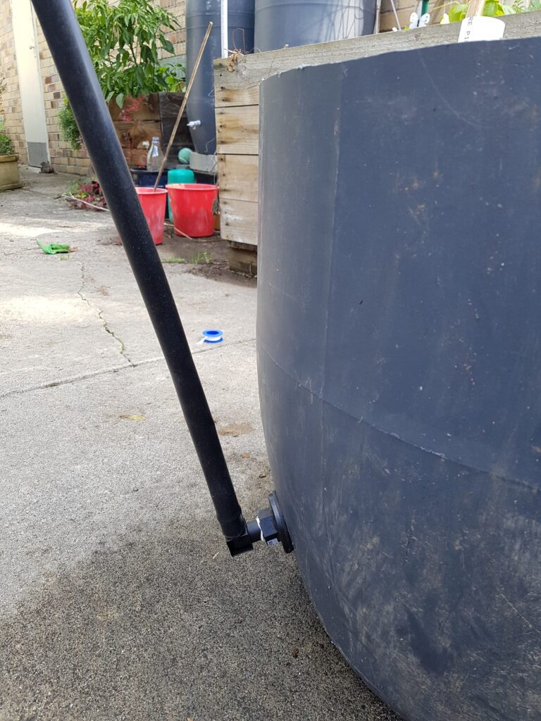 Now that your barrel is full of water, it’s a good time to reduce the ridiculous length of that pipe. Grab a measuring tape/ruler/favourite stick and measure the depth inside the barrel to the water level. All going well, it should be around the 30cm mark…