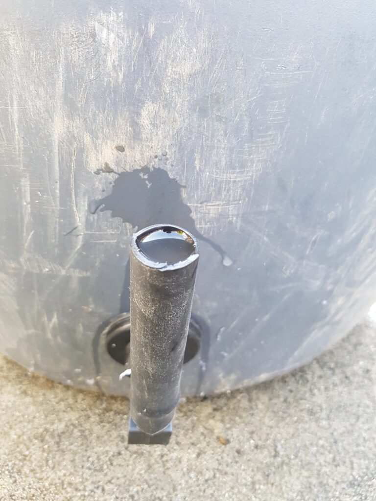 Below you can see the outlet pipe – you can totally cake the round bit that will push up against the barrel with silicone sealant. This will prevent any possible leakage. (I have no idea what that round bit is called. The seal? I don’t know. Sorry.)