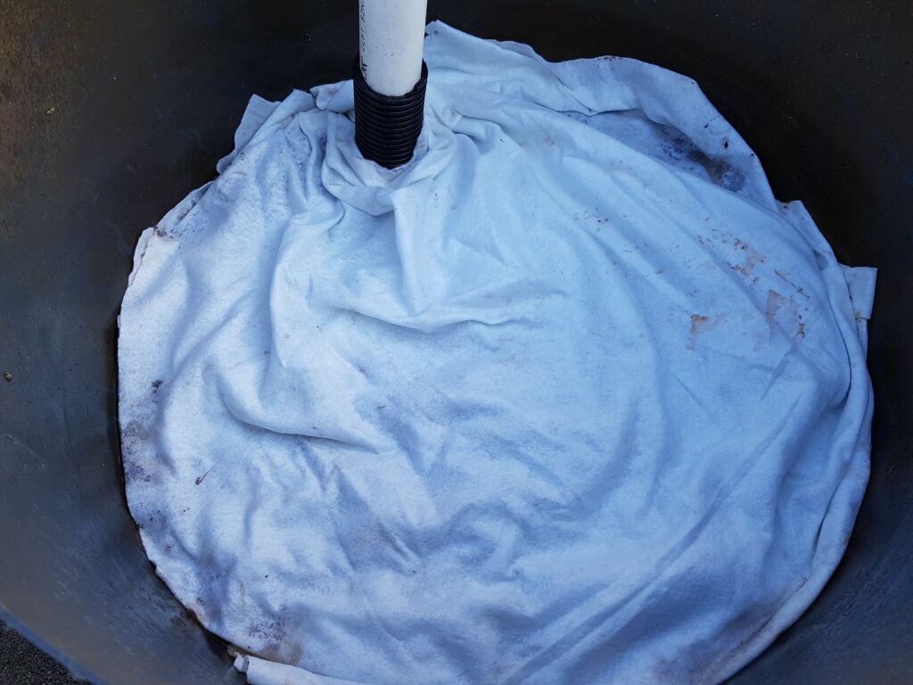 When you’re happy with the scoria levels in the barrel it’s crunch time – time to add the water! You can use the hose to pour it down the PVC pipe if you like, or just fill the barrel through the stones. No biggie either way – just make sure that the scoria is level and barely covered by water.