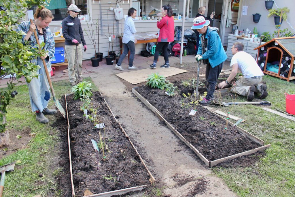 The Permablitz crew recently blitzed Sandy’s place thanks to a design from Terry, Anne and Clare. A massive thanks to all the volunteers on the day who made quick work of sheet mulching, espaliering, garden-bed making, planting and more!