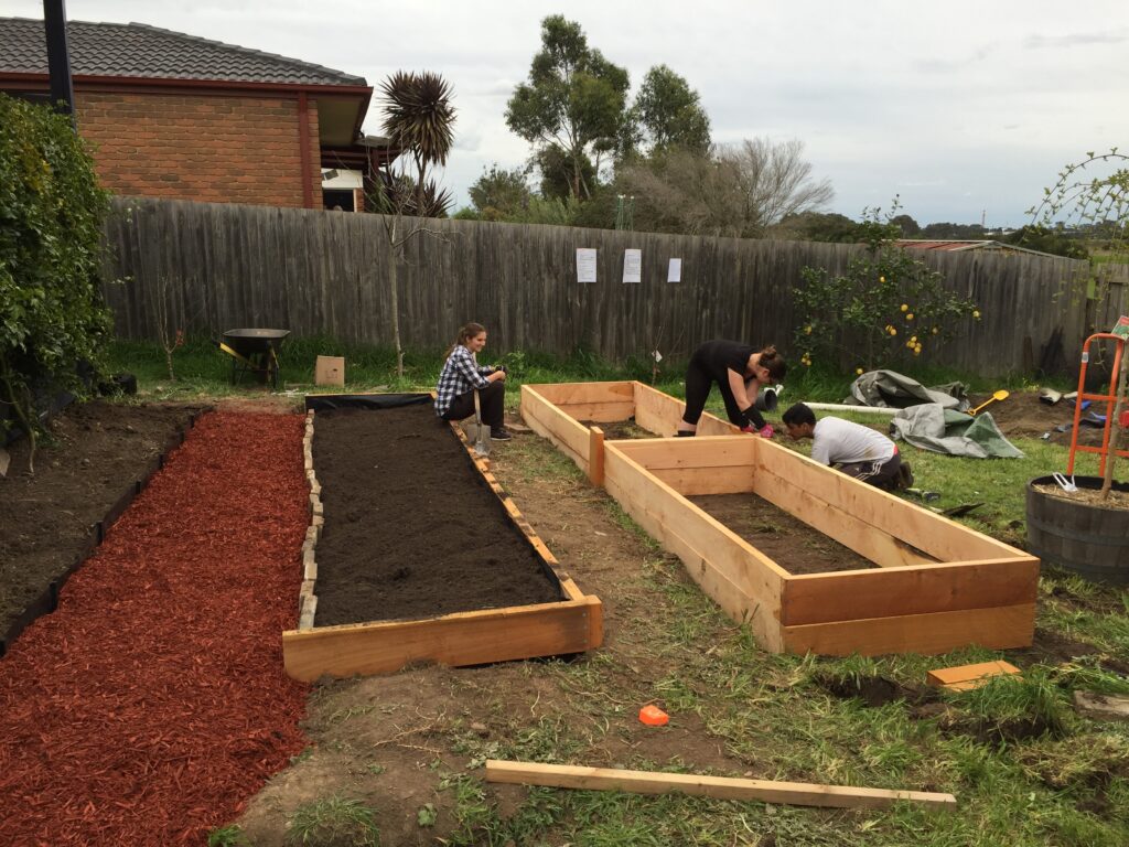 The volunteers were a great mix of folk from as far away as U.S.A and Japan, and as close as Frankston and Langwarrin. An interest in d-i-t (together) food growing and building resilience was the common glue that had brought us all together!