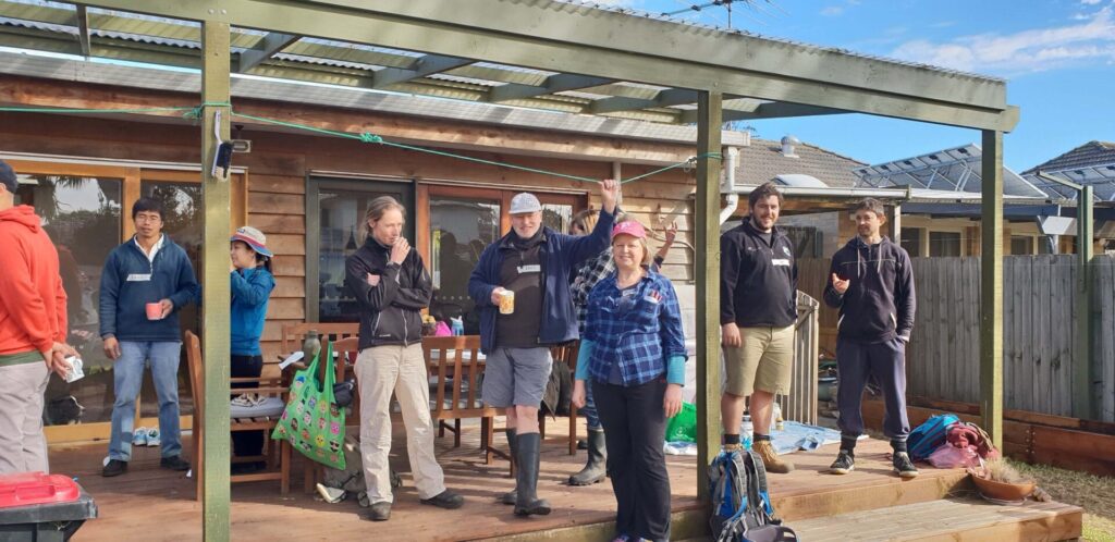 The return to Tina’s home in Edithvale (after the first blitz two weeks prior) started with a sunny day once again, but this time there was something different – a little more wind… and all newbies for the Permablitz with one or two oldies coming a little later. The first project for the day was to fix one of the leaking wicking beds. Ooops! Whilst doing the hospital bed corners of the liner, someone put a staple in the liner which created a little hole. This was easily fixed with a little silicone – hooray!