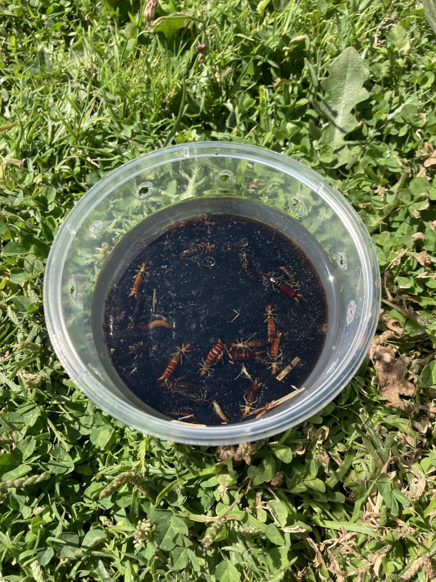 - Soapy water: For this one, you’ll need to go looking for the earwigs either when they come out at night, or find their hiding places during the day. When you find them, spray them with some soapy water or knock them into a tub of it. Just keep in mind that you can take out all kinds of bugs with the spray, so be careful what you’re spraying (unless you want to take them out too).