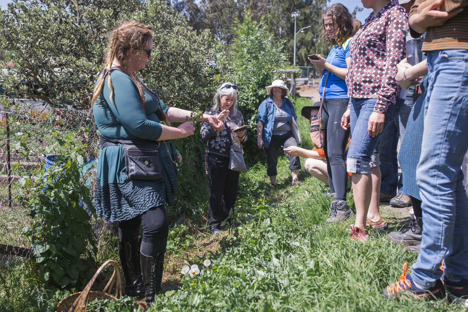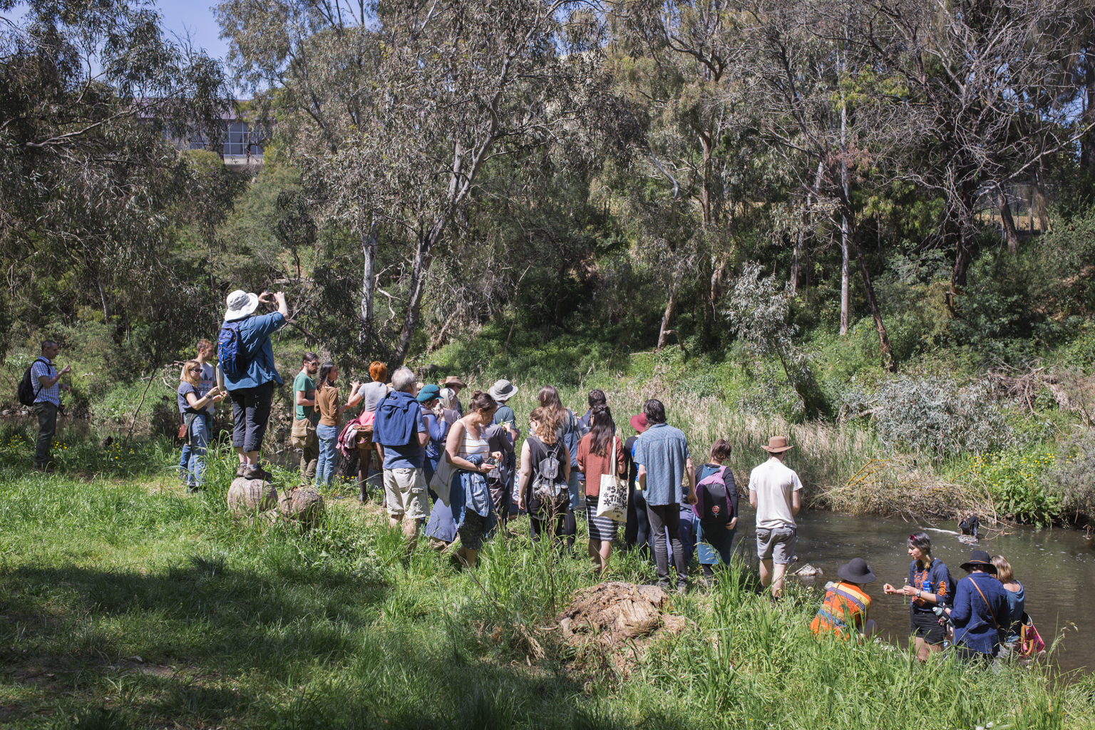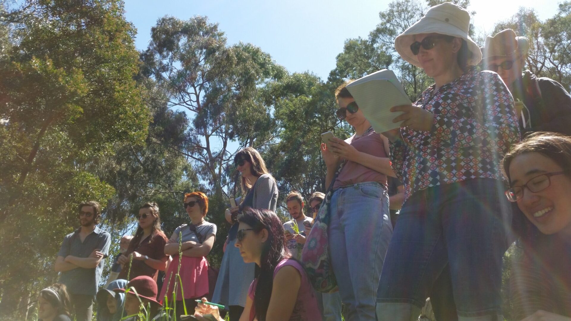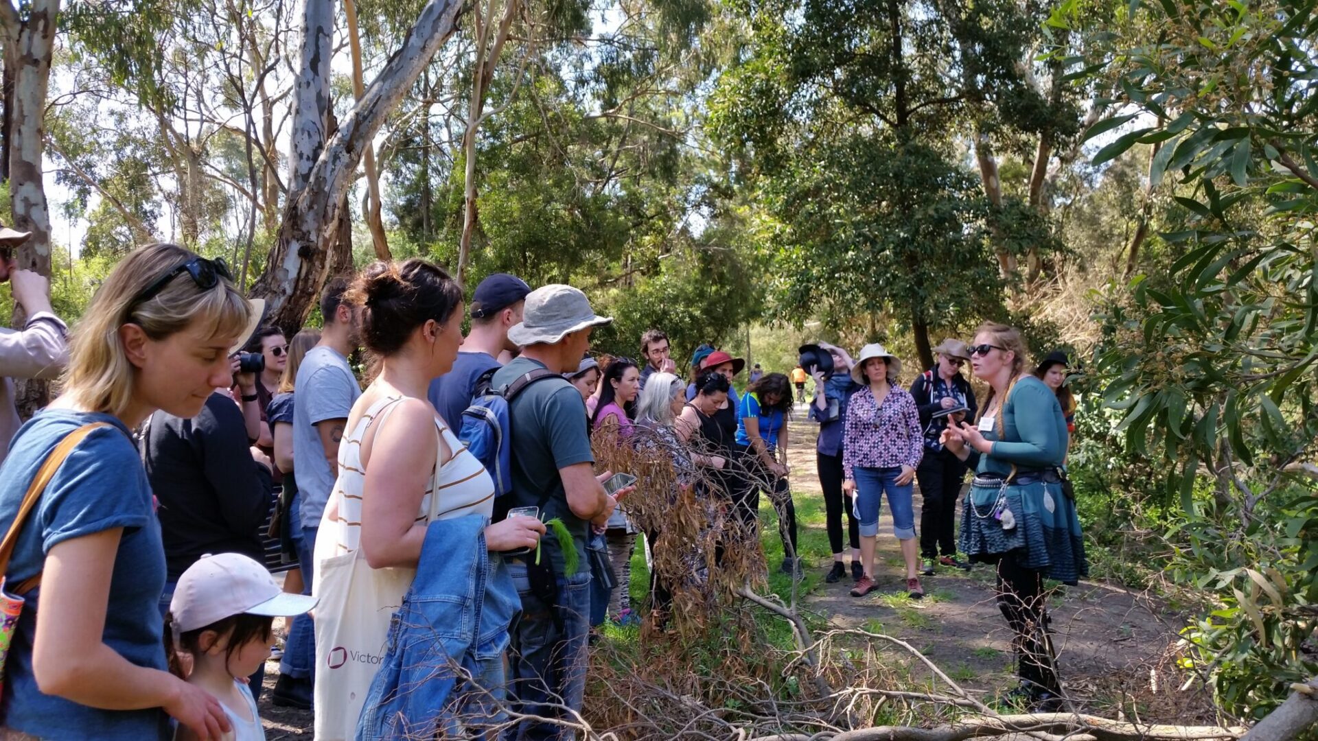 October saw guild members and folk from other walks of life join Free Food Forager‘s Ingrid Button for two very popular sessions (one on the 15th and another on the 22nd) for a meander down to the Merri Creek to forage for food. We learnt about the culinary and medicinal properties of herbs and other plants that we’d otherwise just walk on by, including warrigal greens as a spinach equivalent to wild fennel for tea. Ingrid demonstrated the perils of brushing skin against nettle, quickly followed by various herbal antidotes to take the sting out – including dock leaf and plantain. We discovered that cleavers (or sticky weed) could make a great poultice or pressure bandage when you have nothing else at hand out in the bush.