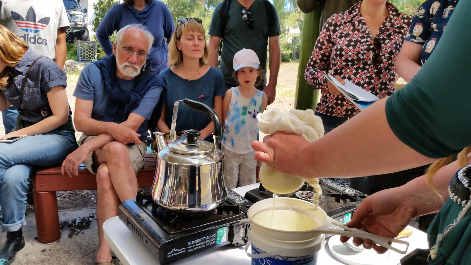 After gathering various edible weeds – notably three cornered leeks – we headed off to a cooking demonstration, learning how to make ricotta cheese in only 5 minutes (!!) which was added to some wild greens and cooked up with pastry into gozlemes, which was accompanied by a three-cornered leek pickle which was both pretty and delectable! These were served with a tea made from foraged herbs and honey.