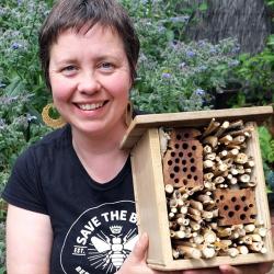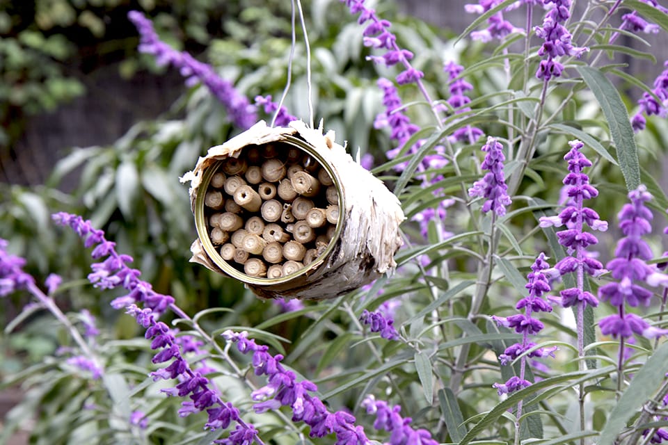 This bee hotel will give pollinators a home close to some favoured fodder – Salvia! (photo by Buzz&Dig)