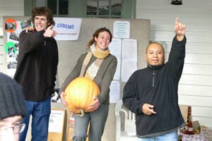 Dan, Cat and Nelson (Codemo president) auctioning off a giant pumpkin