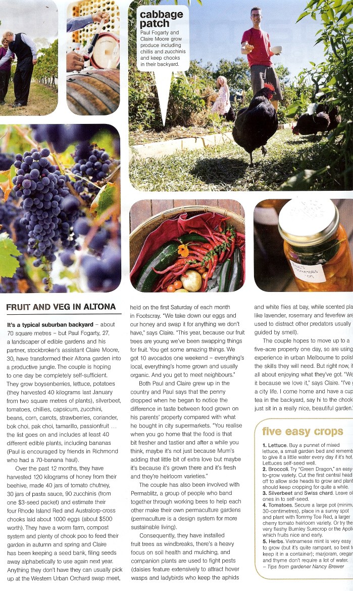 Our Paul from the permablitz network and Very Edible Gardens and his partner Claire were featured in a full colour article in The Age today: