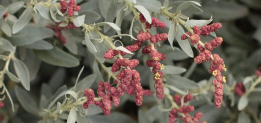 Coastal salt bush has silver foliage, can be used in lieu of salt, cooked as spinach, AND provides habitat for butterflies and blue fairy wrens. Win!