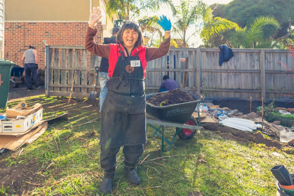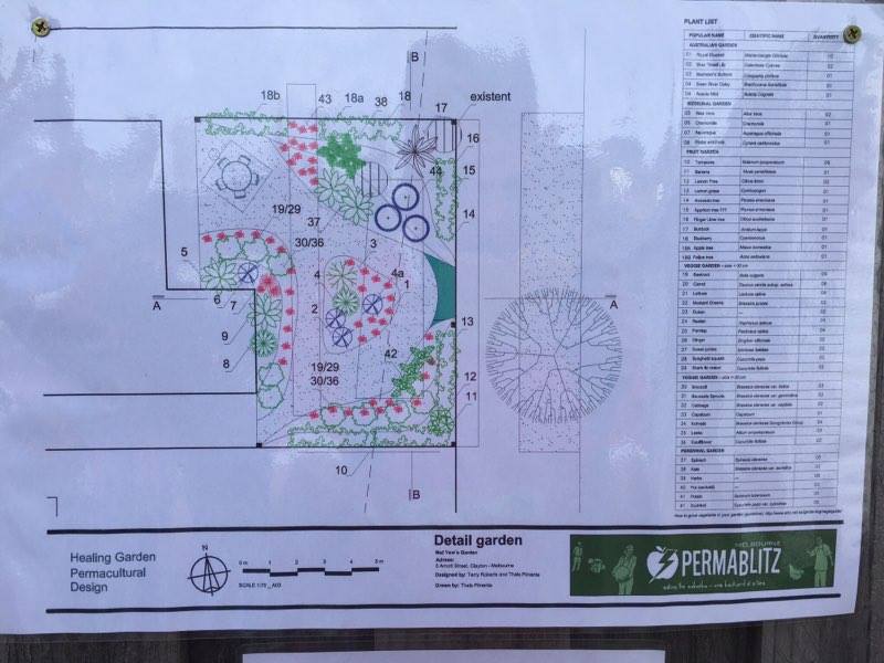 - Front yard: This was where the majority of blitzers were seen on the day engaging in activities ranging from building raised garden beds with recycled materials, mulching, bringing in soil, setting up the espalier for the tree’s, pruning, mulching, planting and building a small pond.