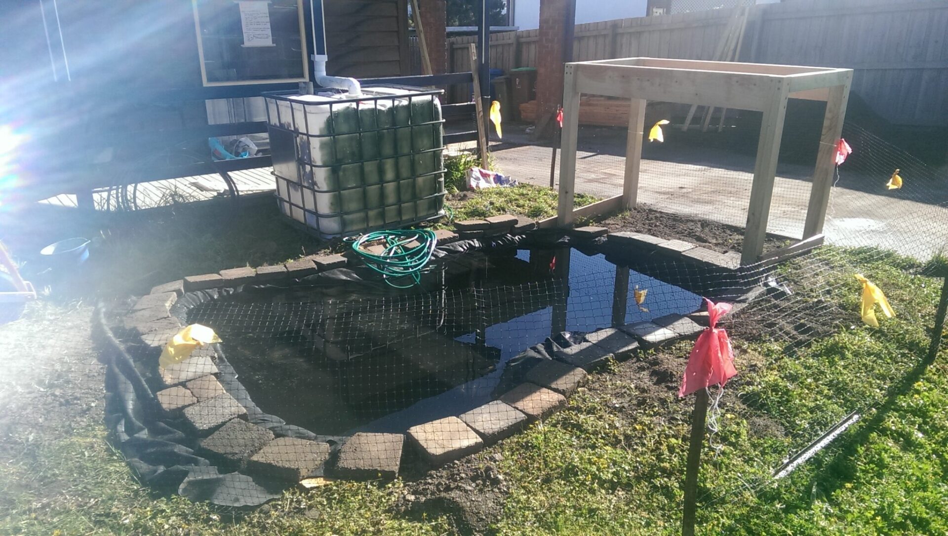 Irrigation was also put in, with trenches dug an agi pipes put in place. The pond was dig out, and Jeremy was able to fill it the following day – it looks great!