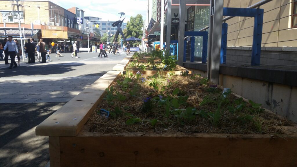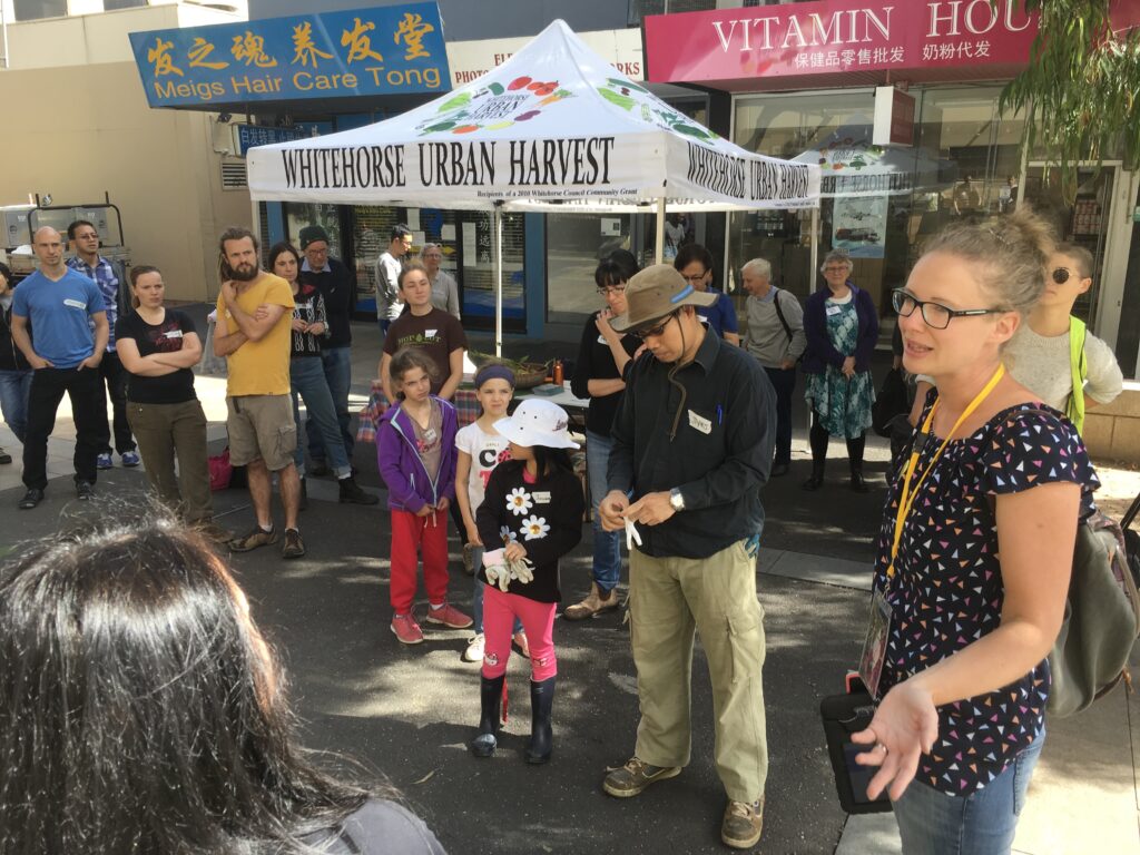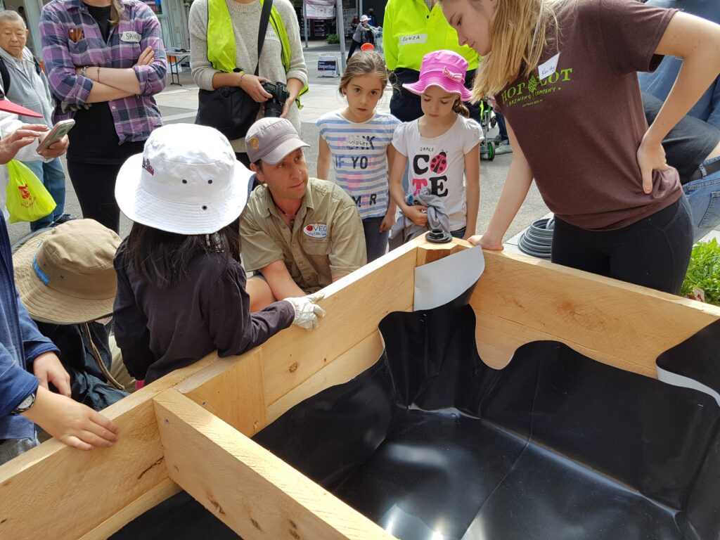 The Saturday started off cool and drizzly, but quickly warmed up as eager blitz volunteers met in the brick and concrete settings of the Box Hill Central Mall with a vision of transformative action – some herb’n’veggie-filled wicking beds were going to be made!