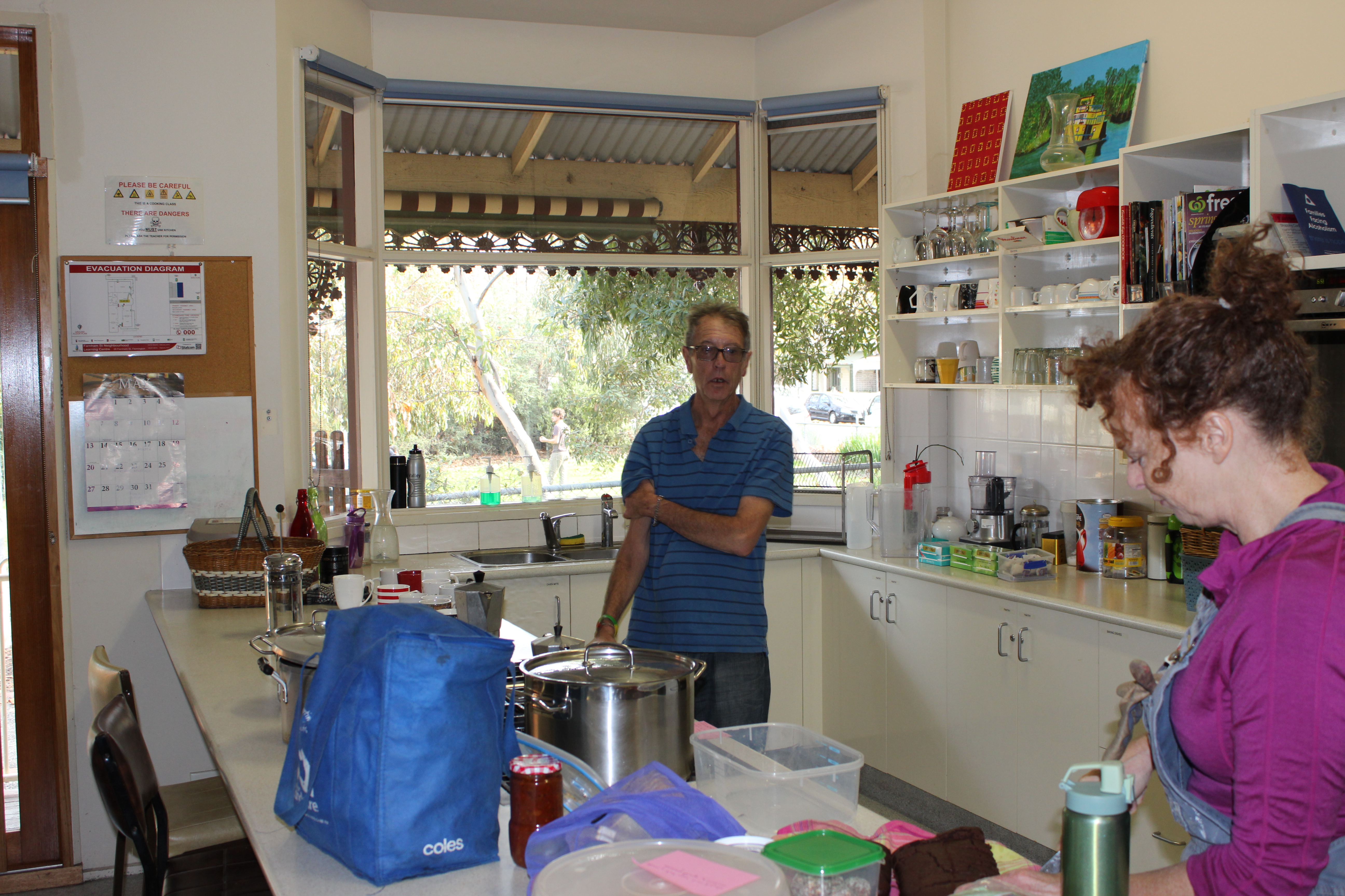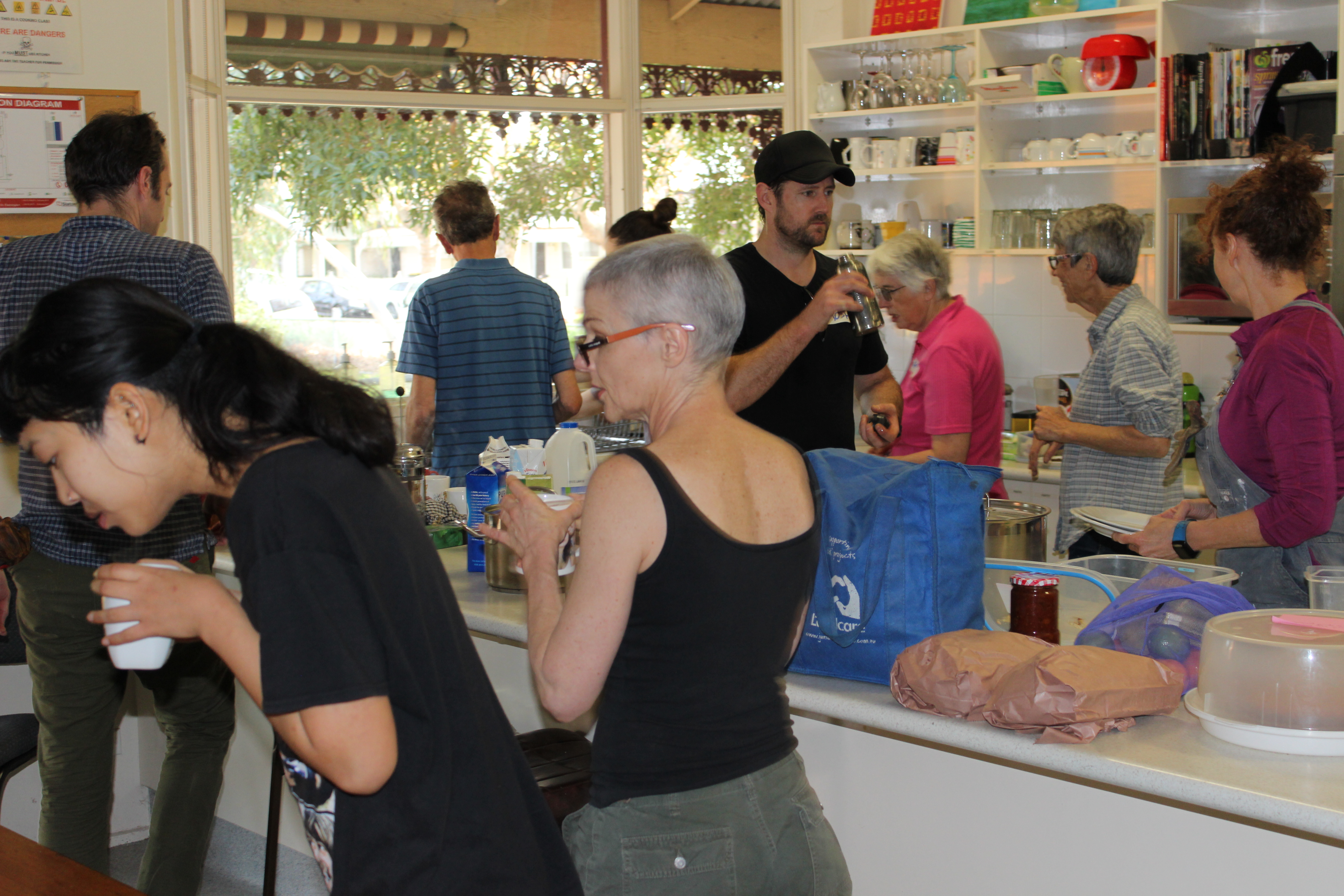Morning tea – so important and delicious! Cakes, slices and muffins boosted energy & morale and Rob (at the sink) kept up a supply of excellent coffee.