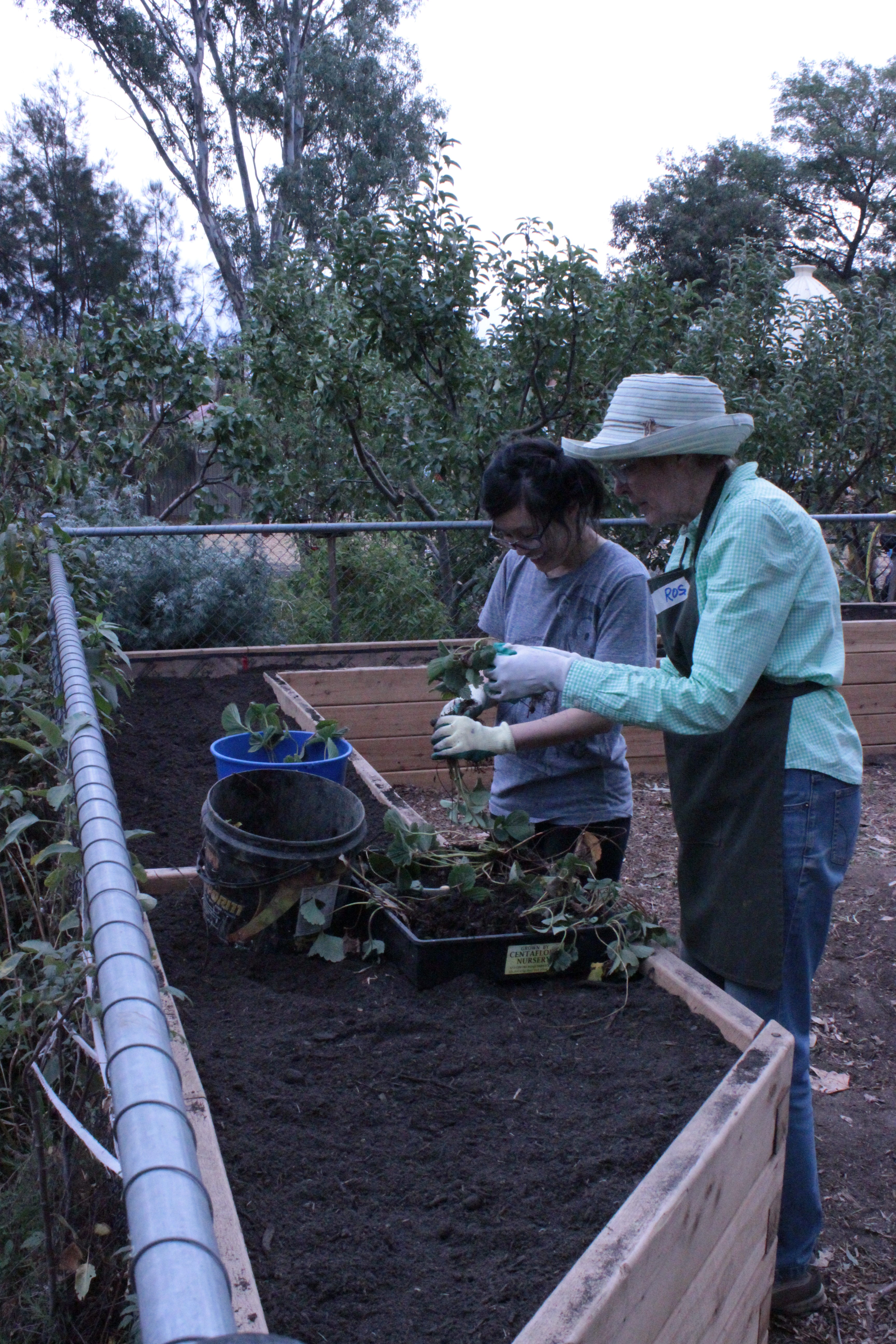 Agnes, Amelie, Nikki (and others I’m sure) worked together to get the bed filled while Ros and Rob prepared strawberry babies for planting. Agnes looked so pleased with the filled bed and delighted to be able to finish the job by tucking the babies in their beds. More to be planted and irrigation to be set up, but what a perfect finish to some of the day’s efforts.