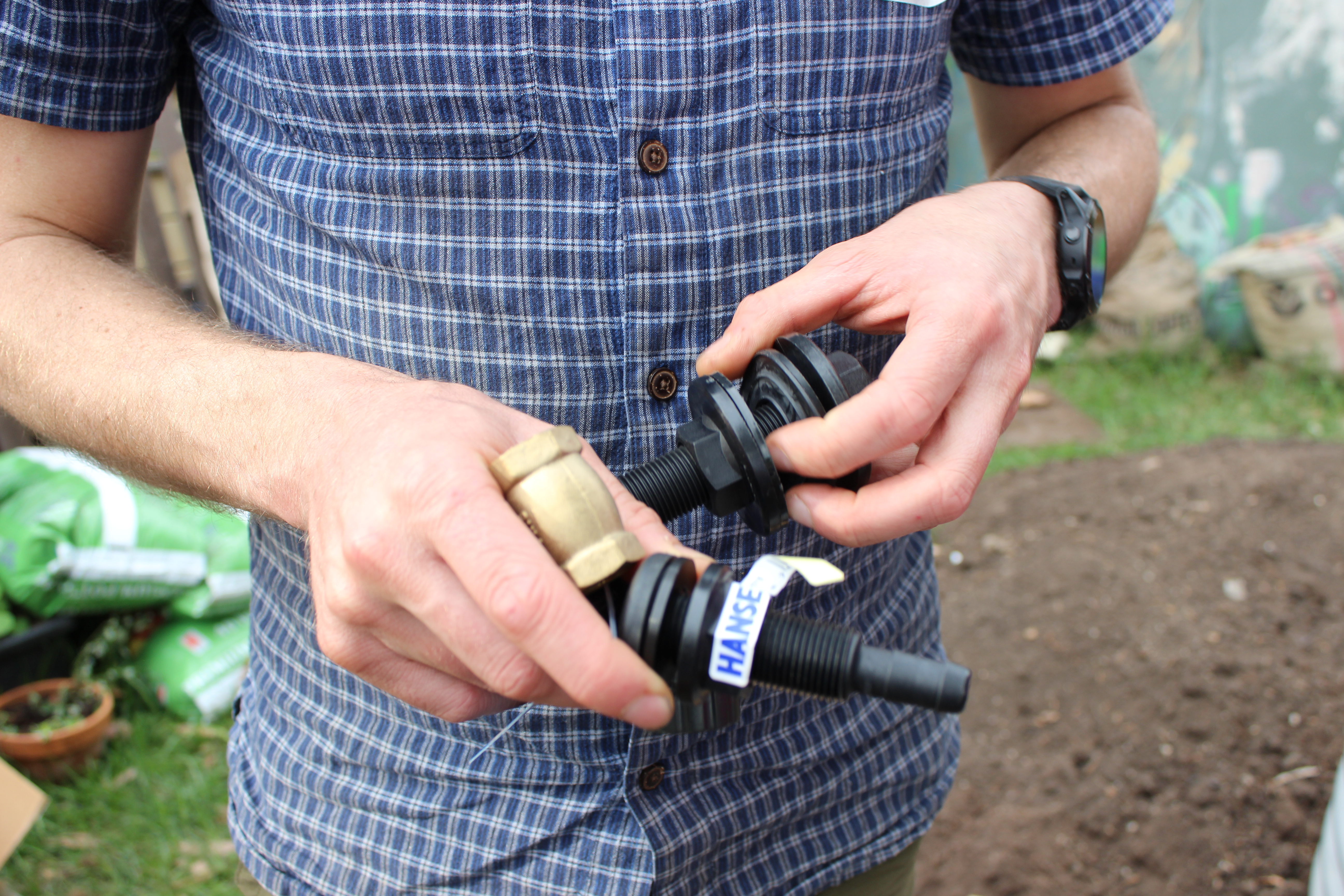 After a little plumbing-splaining from Pip, Dylan was able to get going on installing the wicking bed outlet and overflow. Once that was done there was satisfied smiles all round as the first of the wicking bed fills with water up to the level of the gravel for a bit of a test run.