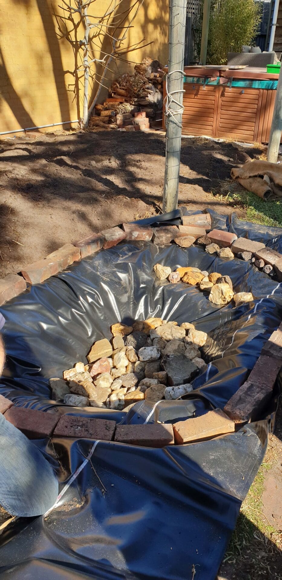 We also built our first pond. A hole was dug, then we smoothed out the dirt, adding carpet so no piercings occur in the liner before adding the liner and rocks, before finally adding the water. What a beautiful site that was! Oh and by the way the way to keep them clean is to get fresh water mussels, as apparently they filter the water and love all that yucky stuff.