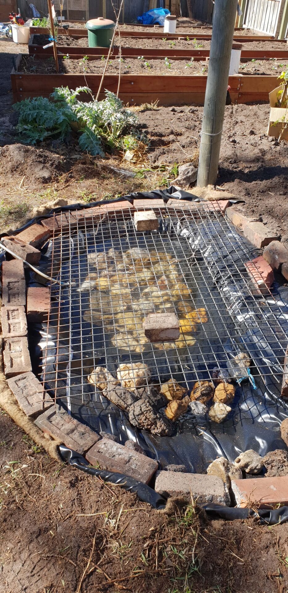 We then proceeded to fill in the other wicking beds with soil and manure. We planted some potatoes; Tina informed me that they need to be treated before you put them in the ground due to a fungus that attacks the soil and can then destroy the soil’s nutrients. Good tip!