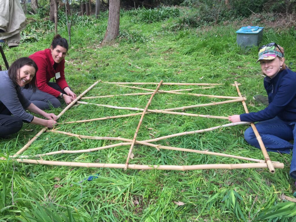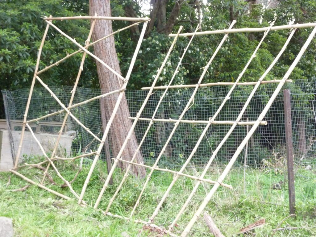 Bamboo lattices were constructed on site to be set up as props for berries and other plants needing to climb. They looked pretty easy to do and will be very effective.