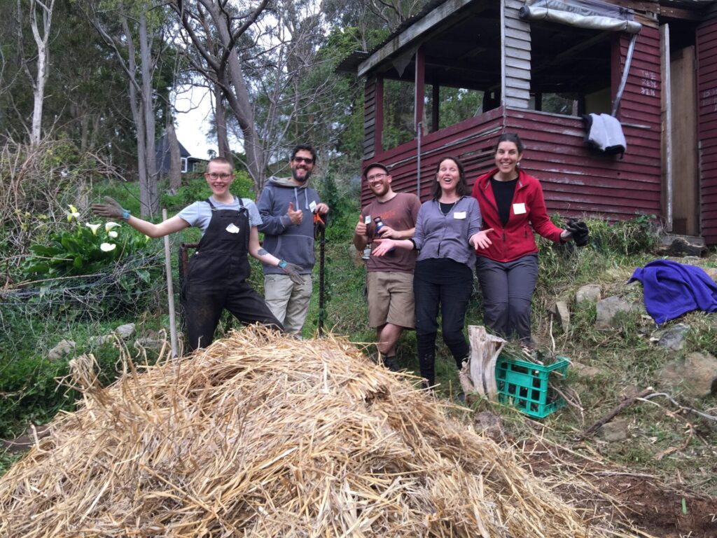 There were some familiar faces – Tom, on Hugelkultur bed duty as he is very experienced at these – and Natalie, one of the two designers of my own Permablitz. Two others are newcomers to Australia from Switzerland and Brazil – very different gardening experiences for them!