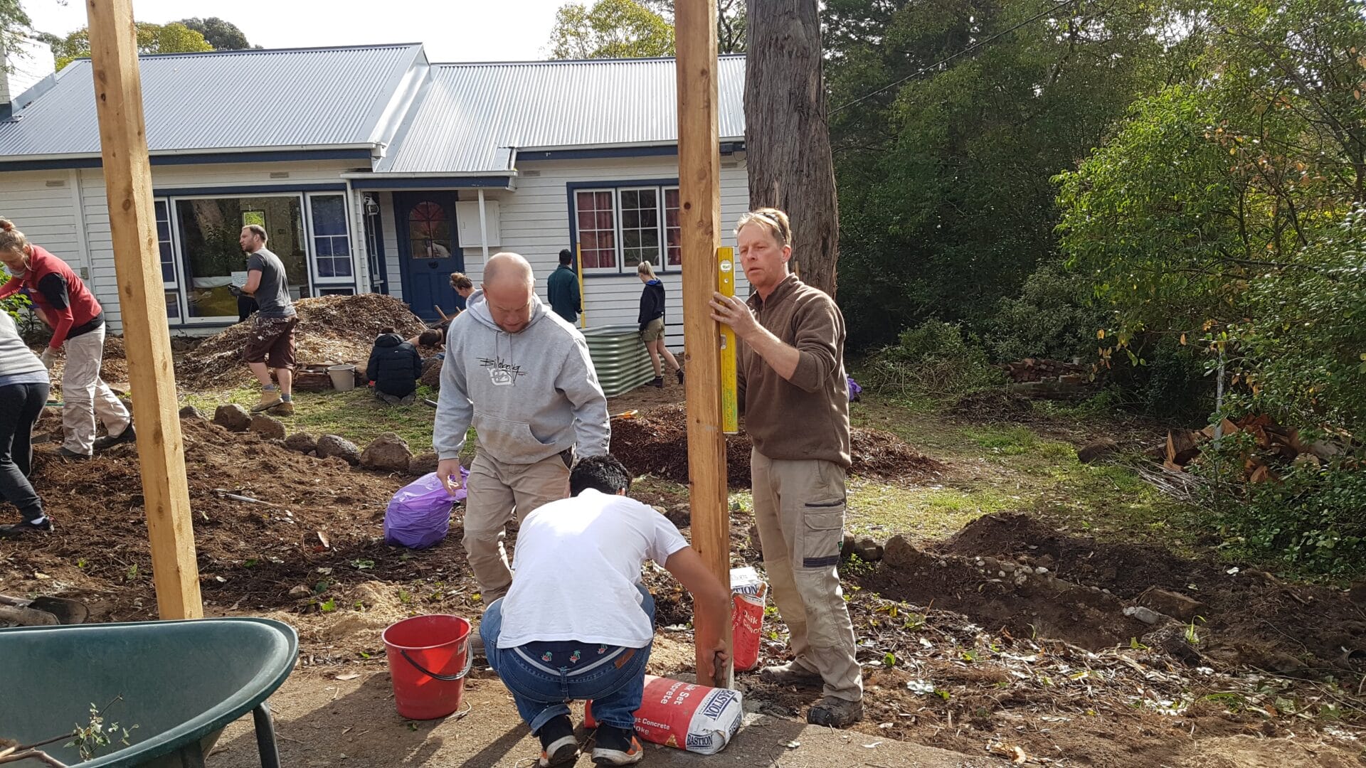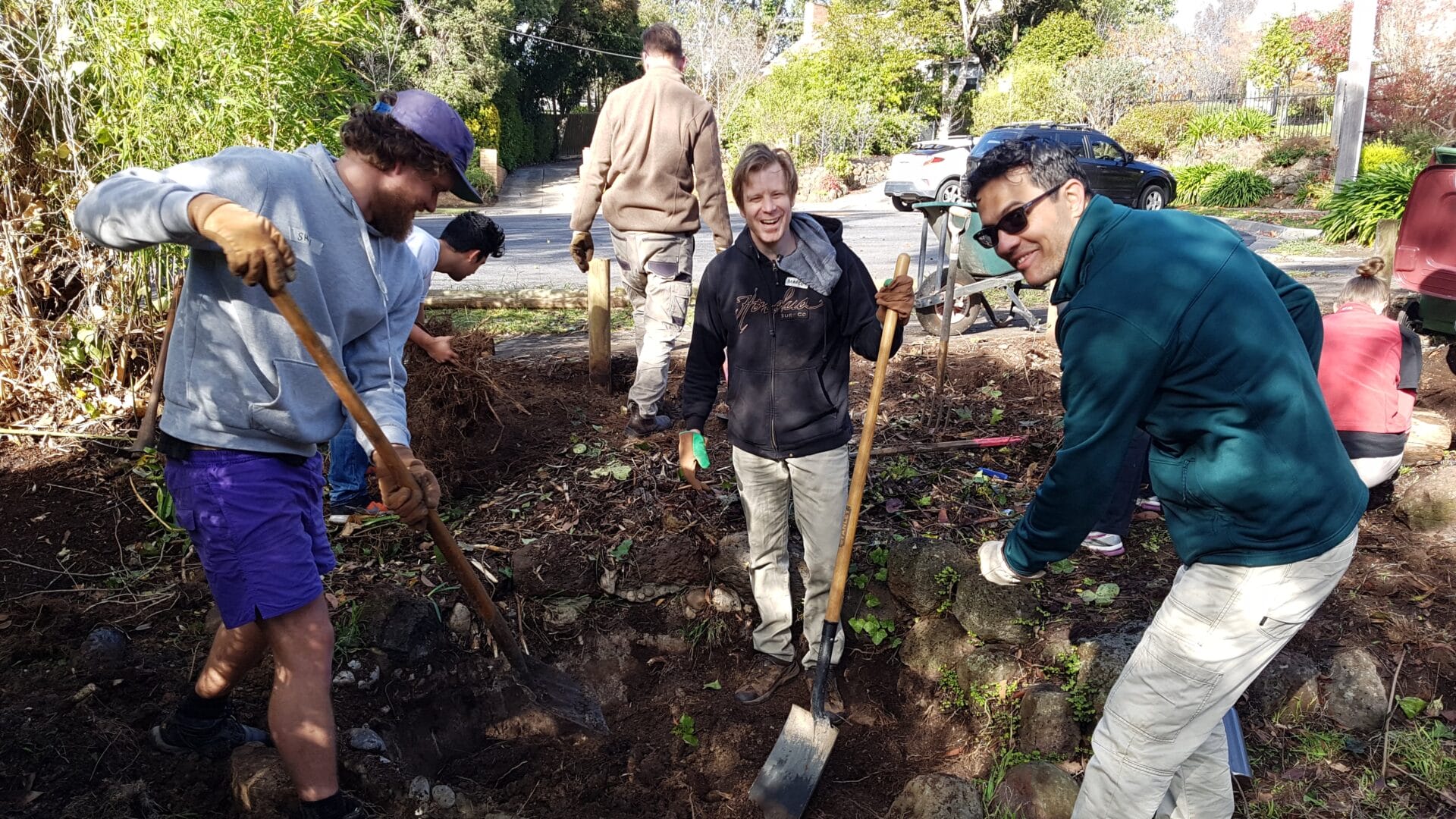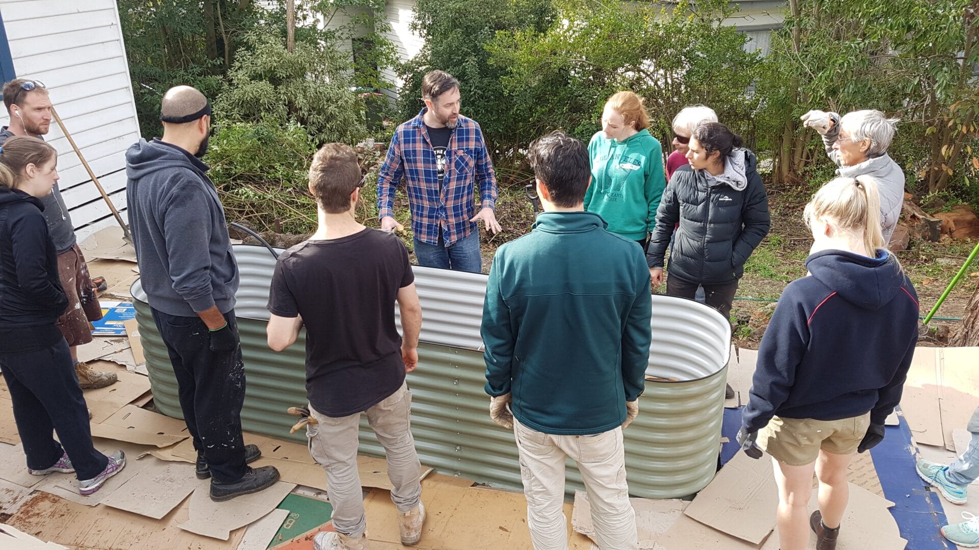 Over 25 people helped turn their vision into reality. And what a day it was! In true Melbourne style rain was forecast for the day so part of the preparations meant ensuring we had a marquee to hide under, but when we arrived the sun was shining and we were all ready to get cracking. Adrian shared the game plan with us and we jumped straight into action.