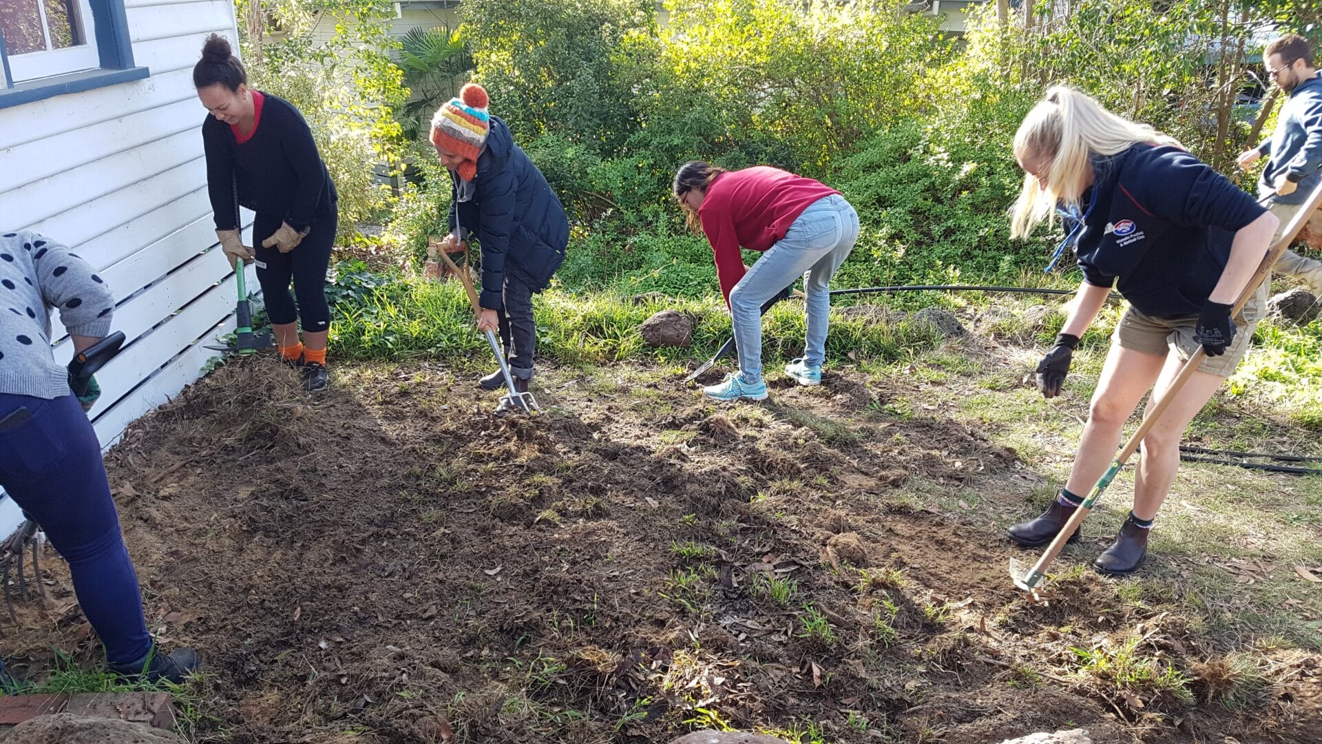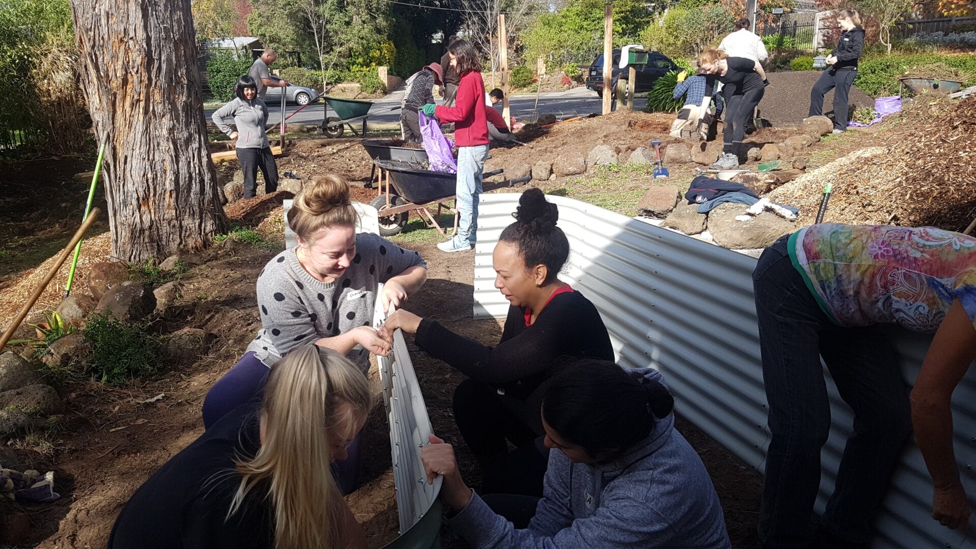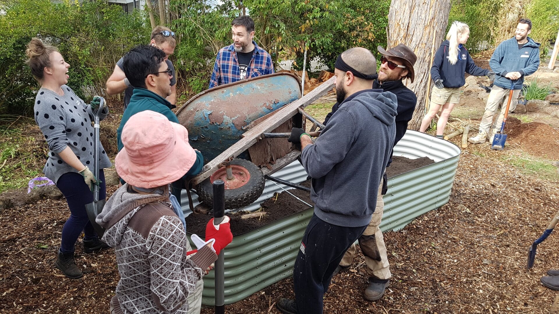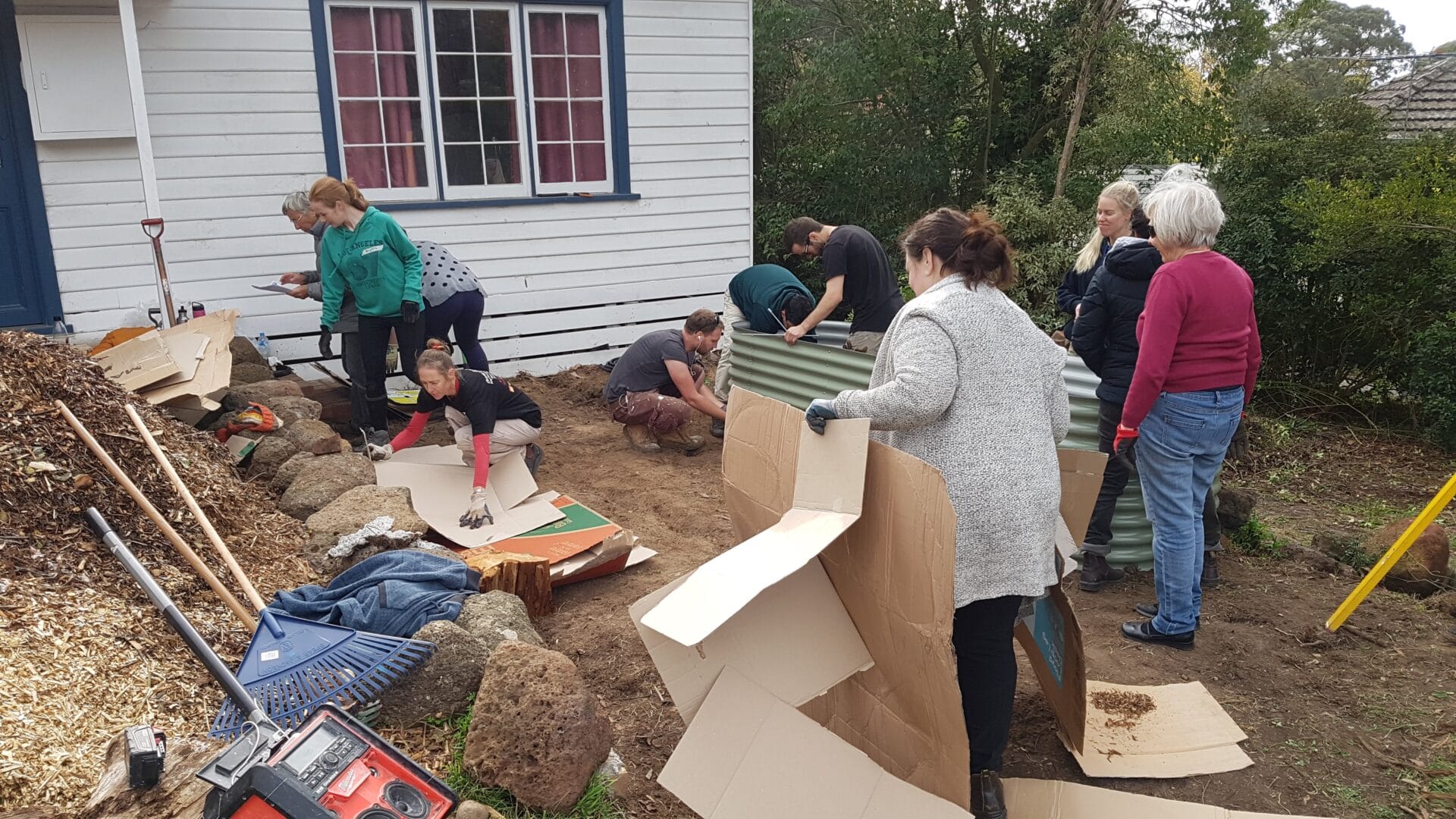 Over 25 people helped turn their vision into reality. And what a day it was! In true Melbourne style rain was forecast for the day so part of the preparations meant ensuring we had a marquee to hide under, but when we arrived the sun was shining and we were all ready to get cracking. Adrian shared the game plan with us and we jumped straight into action.