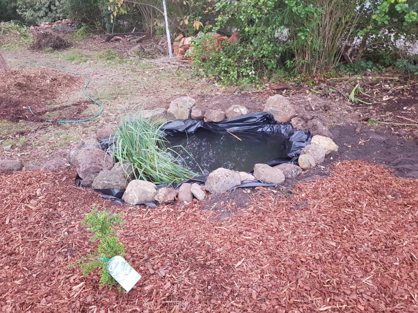 The final design includes bringing the pond back to life, a native garden creating a screen from the street, a wired trellis for kiwi fruit and passionfruit vines replacing the front fence, a massive veggie bed, and of course a large water tank.
