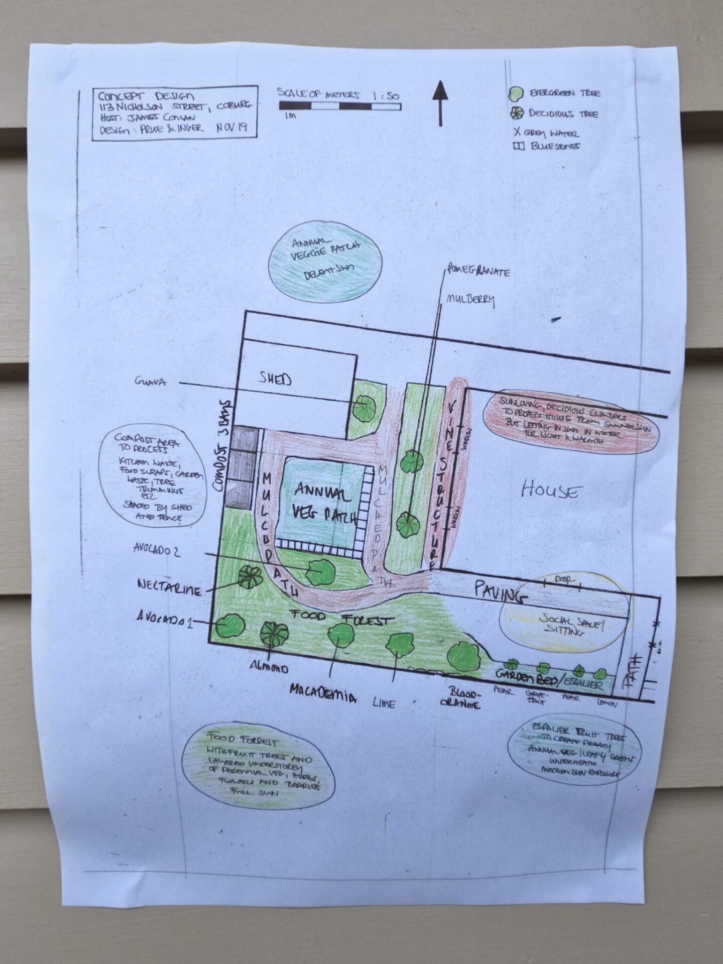 The plan for the day was to expand on the great start that James has made, with a complete permaculture makeover of the backyard including: