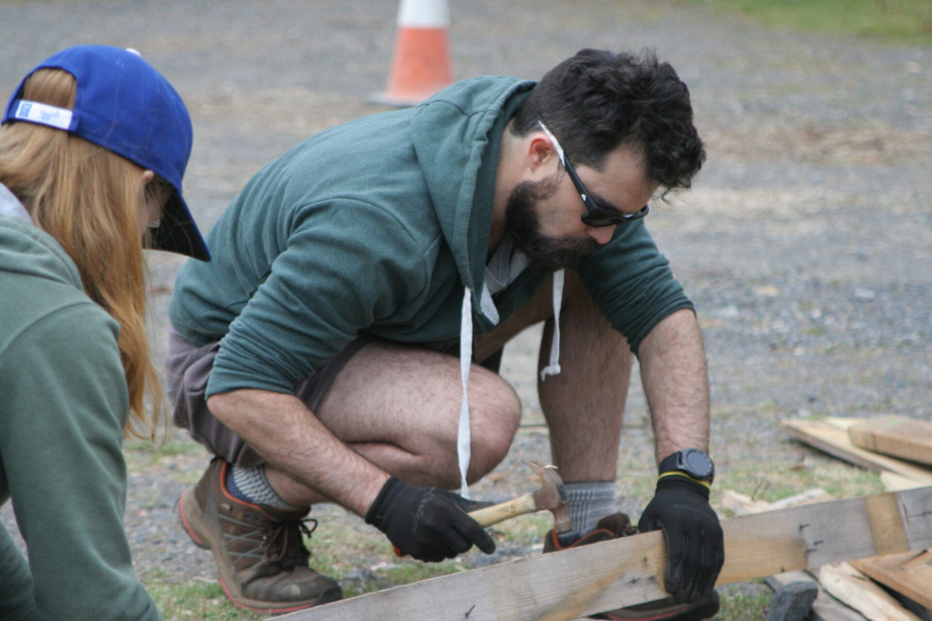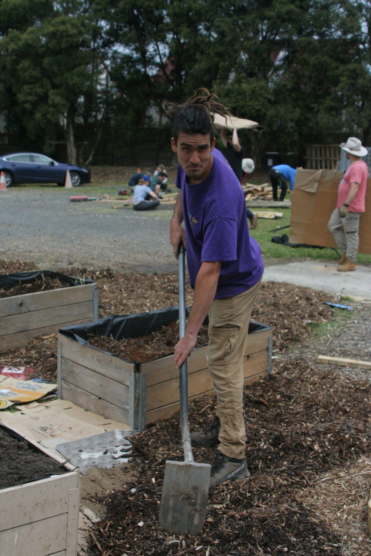 With most of the major tasks completed, the afternoon is devoted to workshops and plantings. Martin hosts a three-bay composting workshop, giving us insight into the different methods of composting and tried-and-true methods that work. At the back of the children’s garden, volunteers begin constructing a tepee that will act as trellis for climbing vines and for children to play in. To finish off a productive day, Martijn and Monique present a social permaculture workshop with activities that highlight the importance of community in creating gardens. All of the volunteers participate and contribute wonderful ideas on how they can grow their community garden and engage the wider community. As the clouds unload rain in buckets, it signals the end of another successful Permablitz with close to fifty volunteers installing nineteen raised garden beds and planting fruit trees.