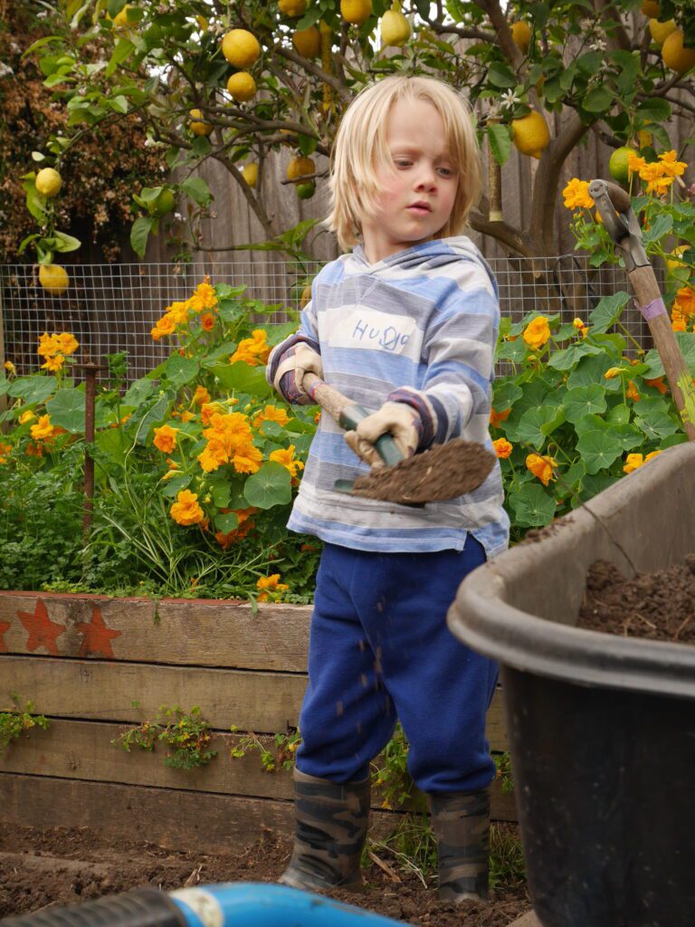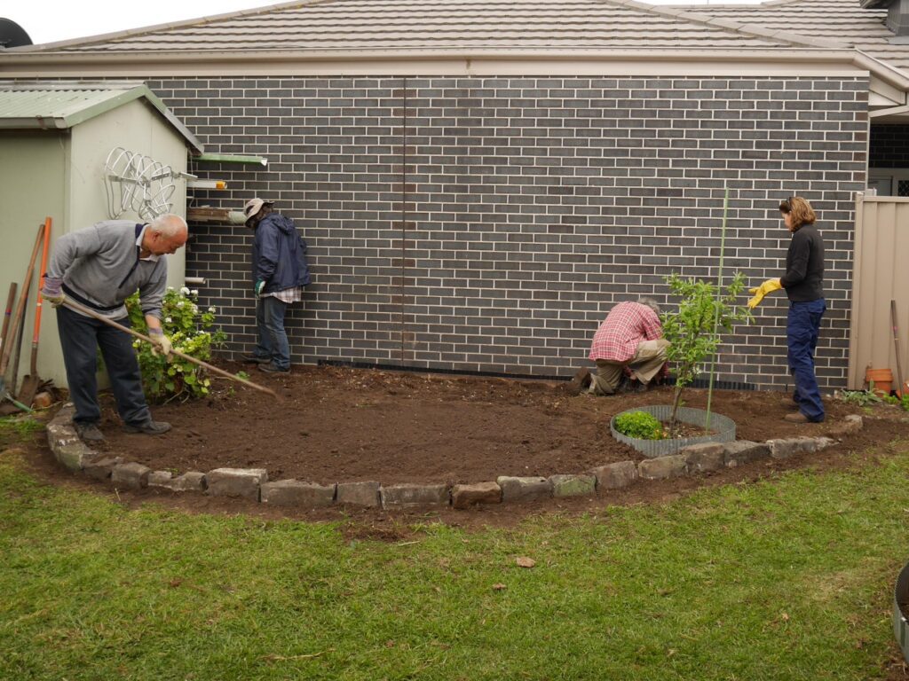 Once upon a time, on an invigoratingly brisk spring day in the far-away kingdom of Kingsville South, a rich mountain of soil awaited a team of super-volunteers to magically transform it a glamorous sustainable garden – a big thanks to The Green Centre for providing the soil!