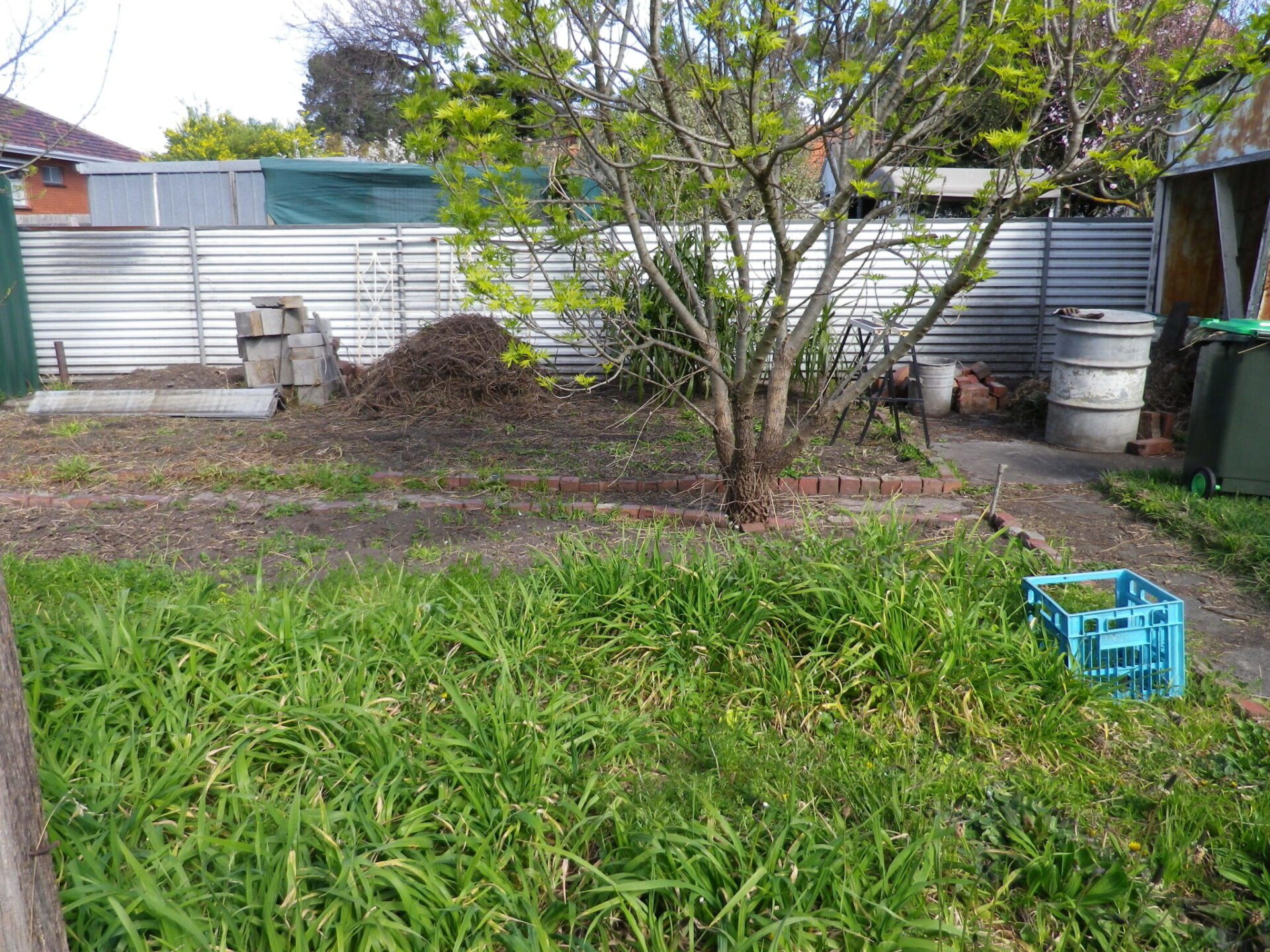 After the permablitz we had 5 veggie beds, the chook shed was close to ready for chooks and the area near the veggies was free of weeds and fruit trees had been planted. We then finished the chook shed and run and have 2 happy chooks that produce enough eggs for a family of 3. We’ve planted more fruit trees near the ones that were planted at the permablitz and also created more areas for growing veggies but have planted straight into the ground (ie- not bothering with creating more wooden beds).