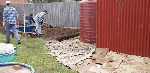 The sweltering day was made cooler by the enclave of native vegetation throughout Anne-Marie’s Eltham property, enabling the volunteers to complete their edible garden, with compost bays, swales, a pond and more!